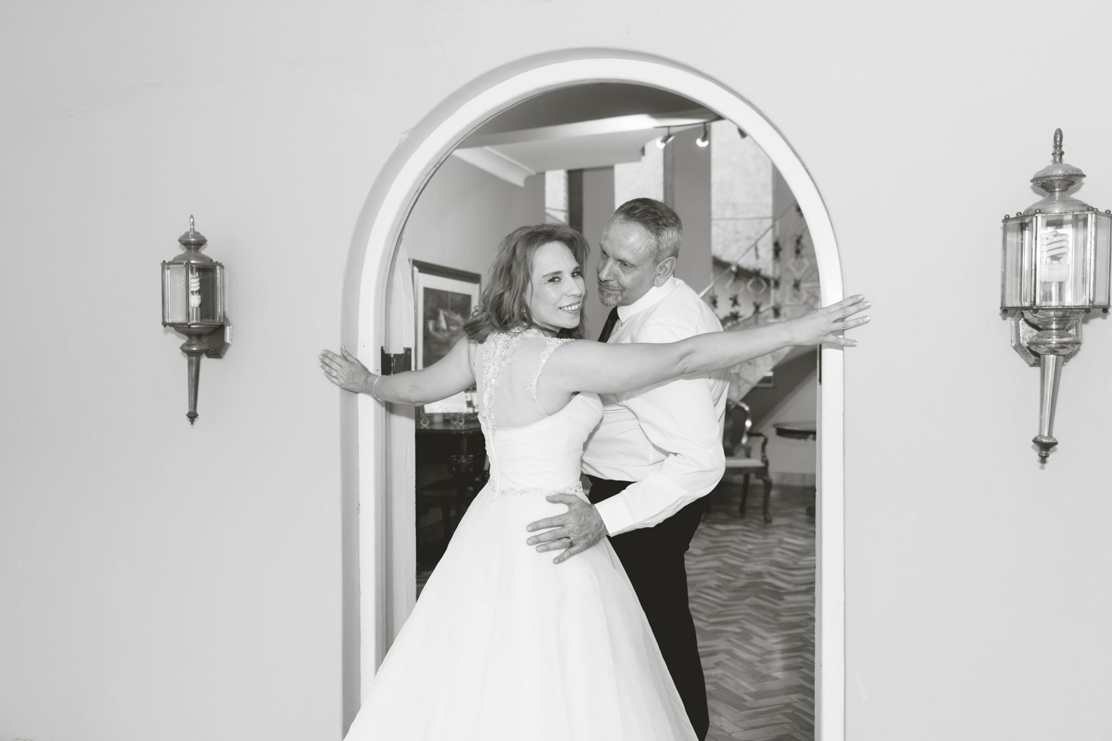 - Staircase photos of the bride and groom, as well as the Bridal